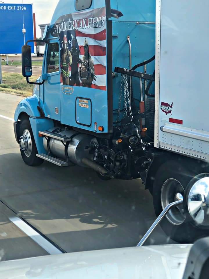 I was looking at the flag and first responders on the cab. I almost missed the bike! Cool!