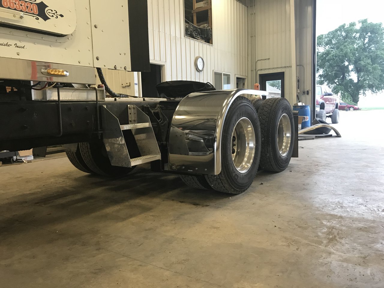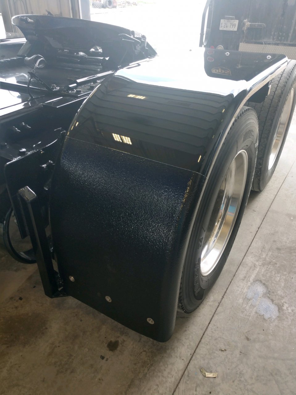 Got one side done and the other is almost done. Had to change a set of steer tires on a company truck and fixed the airline on my trucksent pictures to my buddy that has a truck paint shop in town. He sent me this back with what they finished up today. All kinds of sexy w9 (sorry after further discussion it’s a Pete). Painted bediner on bottom and all black to match the black on the truck.