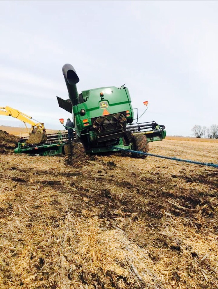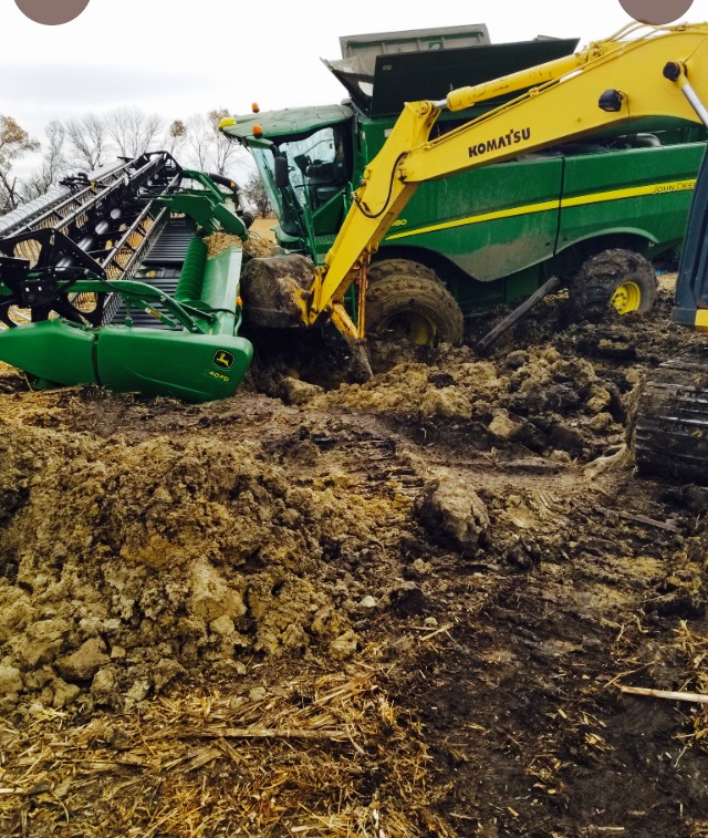 We do have a set of tracks for one combine that did help a lot with the mud. Not many farmers have them up here but some did switch to a wider float tire up front.