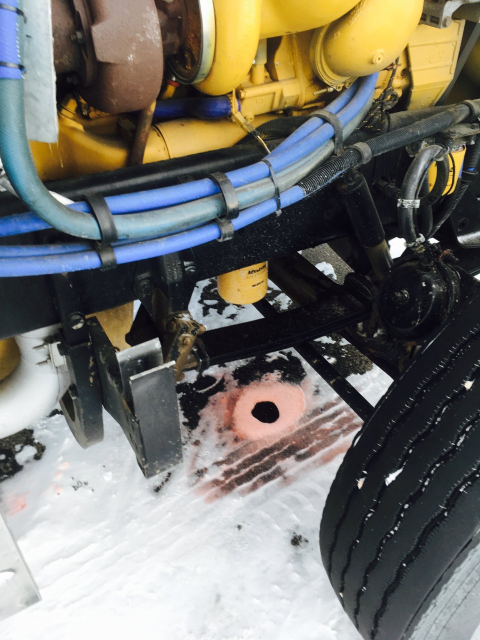 I see my CAT is marking its territory wherever I park at night. Dang cold weather makes everything leak! It looks to be coming from the oil cooler. I'll have to investigate later.