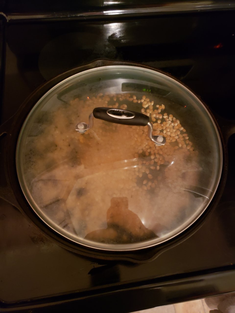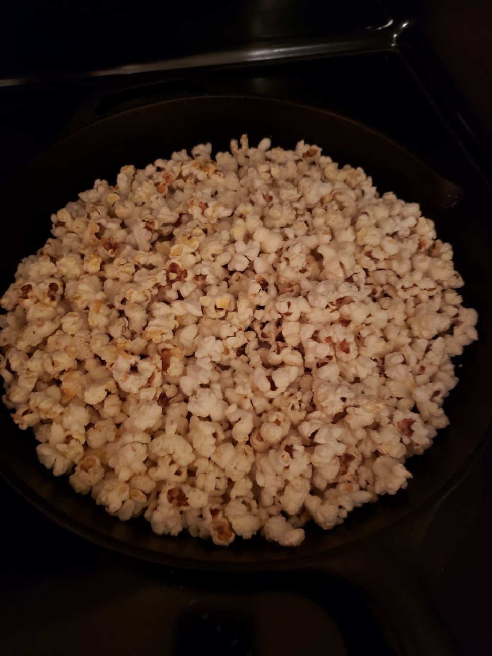 Cast iron popcorn in bacon grease. No butter. @stwik. doesn't need it.