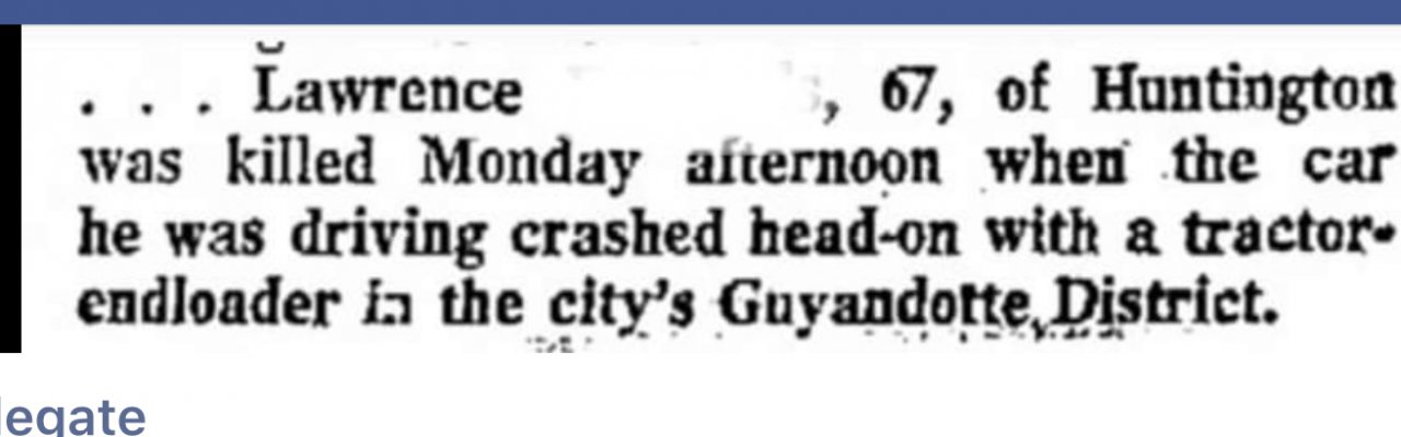 My uncle Lawrence, enloader / backhoe bucket came through the windshield and took the left side of his head off. 1907-1973.