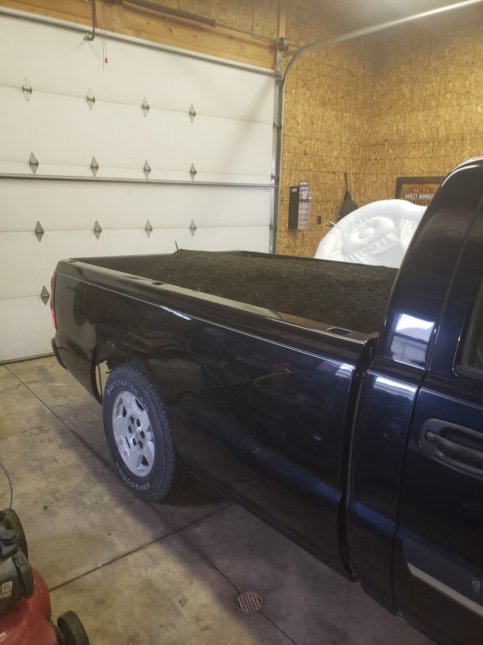 Difference between my 2wd pickup and most kids modern 4wd lifted pickups. Mine only looks like this hauling stuff. Not worried about mulch getting wet. But I dont want it to blow away. 20200610_172132.jpg