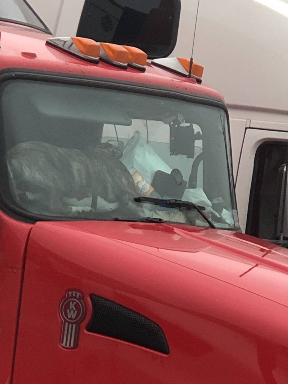 Yes that is a dog sleeping on the dash of that truck.