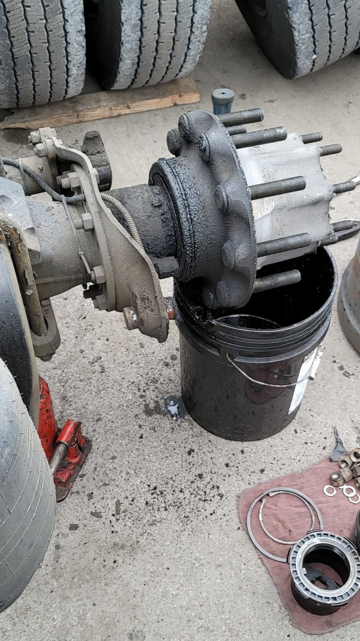 Yep, throwing brake pads on the rear drive axle, a new leveling valve, and a couple brake chambers while we're at it. Brake chambers been back feeding a little bit, and the leveling valve would leak sometimes if it's sitting just right.