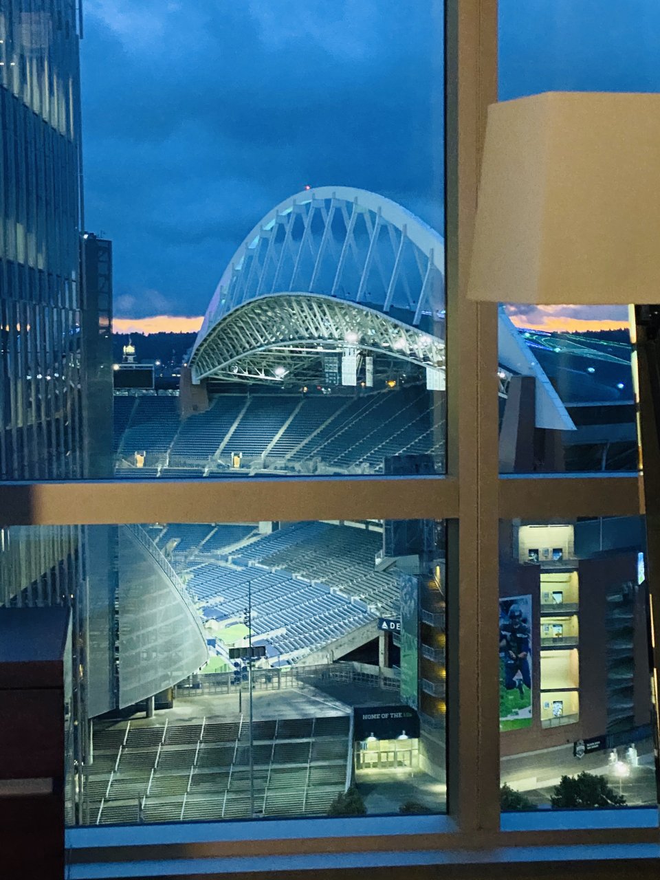 Beautiful night in Seattle. Seahawks stadium is lit up tonight.