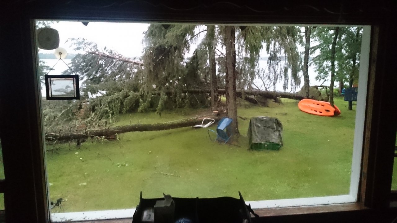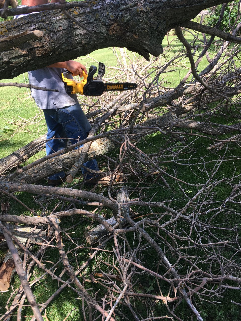 We are doing some cleanup today also. We're using the 20v dewalt chainsaw and is a very handy tool. I highly recommend it.
