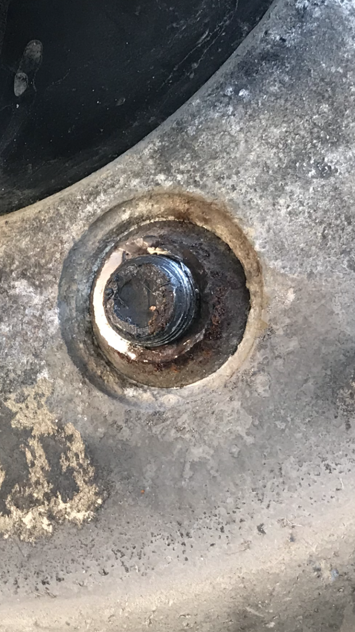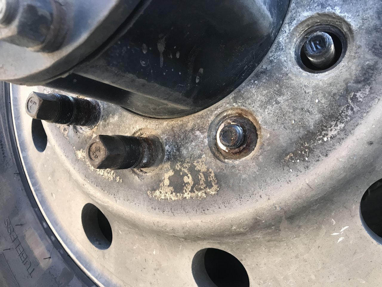 Before I forgot to mention that on old schools he has no cracks or distortions on his bolt holes. All his lug nuts are now present. They're not cracked or distorted showing signs of looseness such as Rusty trails or shiny threads.