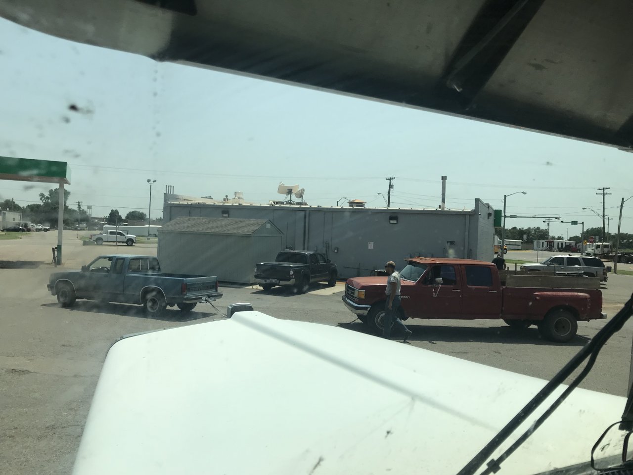 Turns out the guys who move trailer houses have to stop at truck stops sometimes too. And they can’t always back into a spot, so they stop in the middle and run inside real quick.
