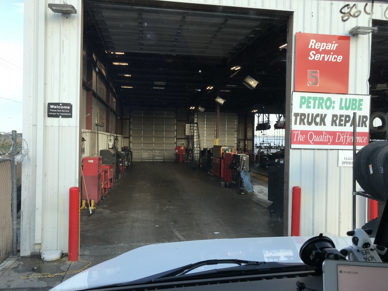 Got a little air leak on the service side air line going to a brake chamber. Not a truck in sight and 6 guys (employees) in the office. “1/2 hour till we can get ya in.”