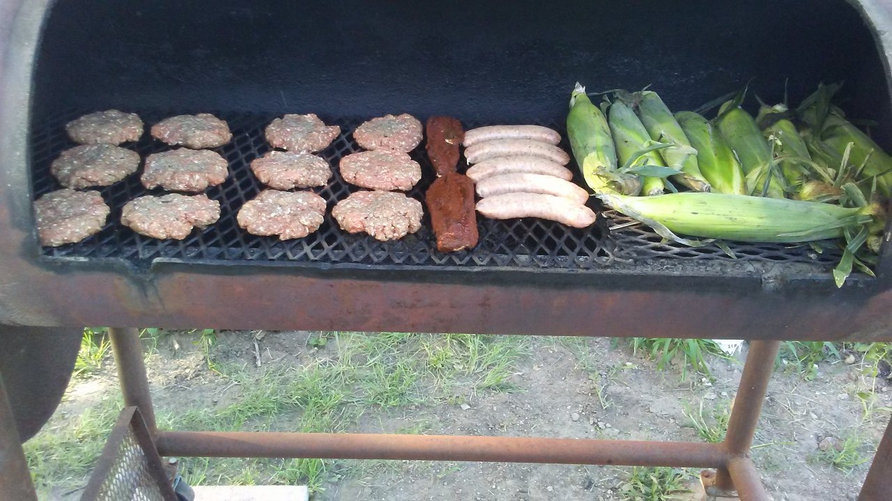 Burgers, deer tenderloins, brats, roasting ears.