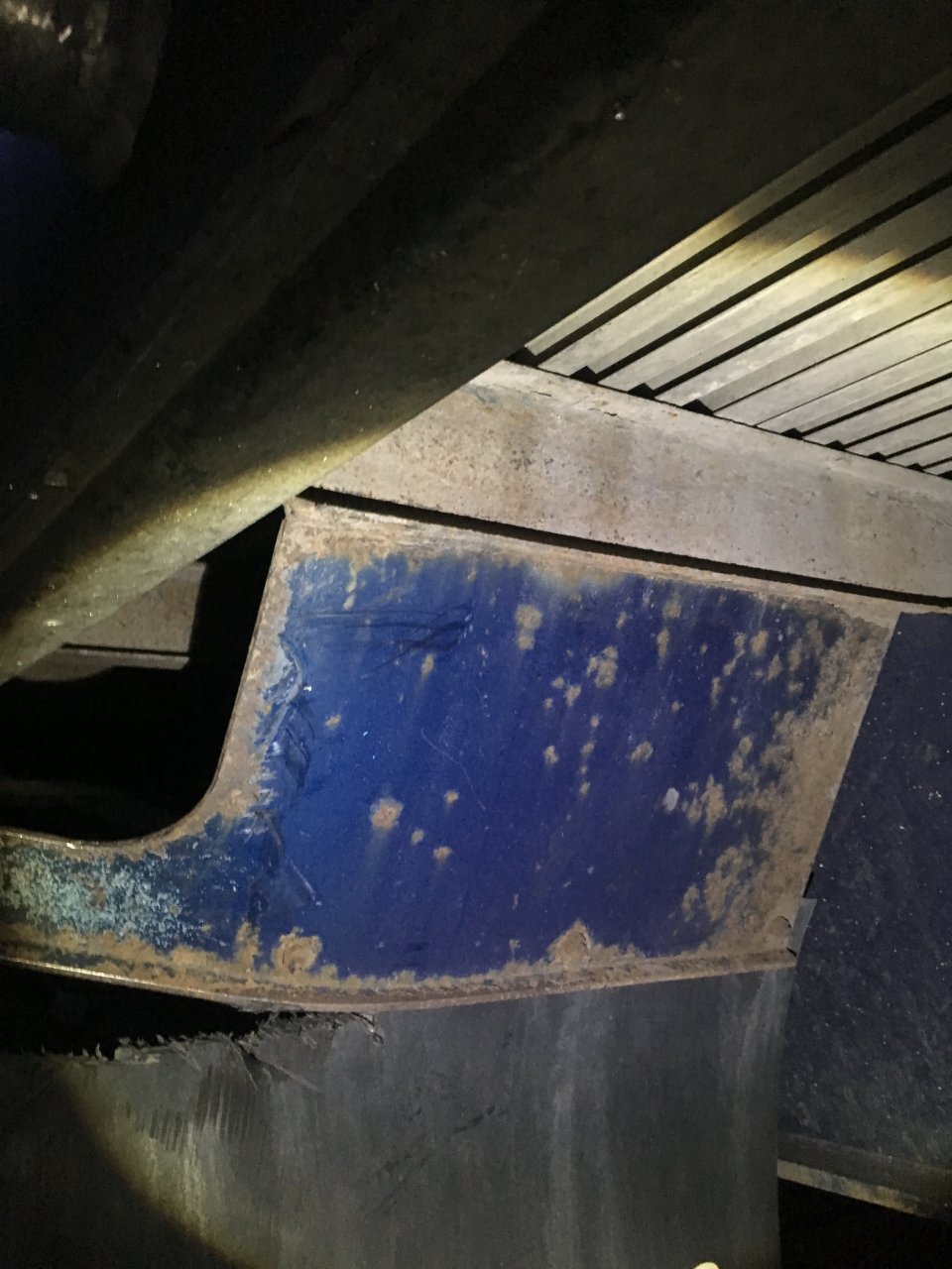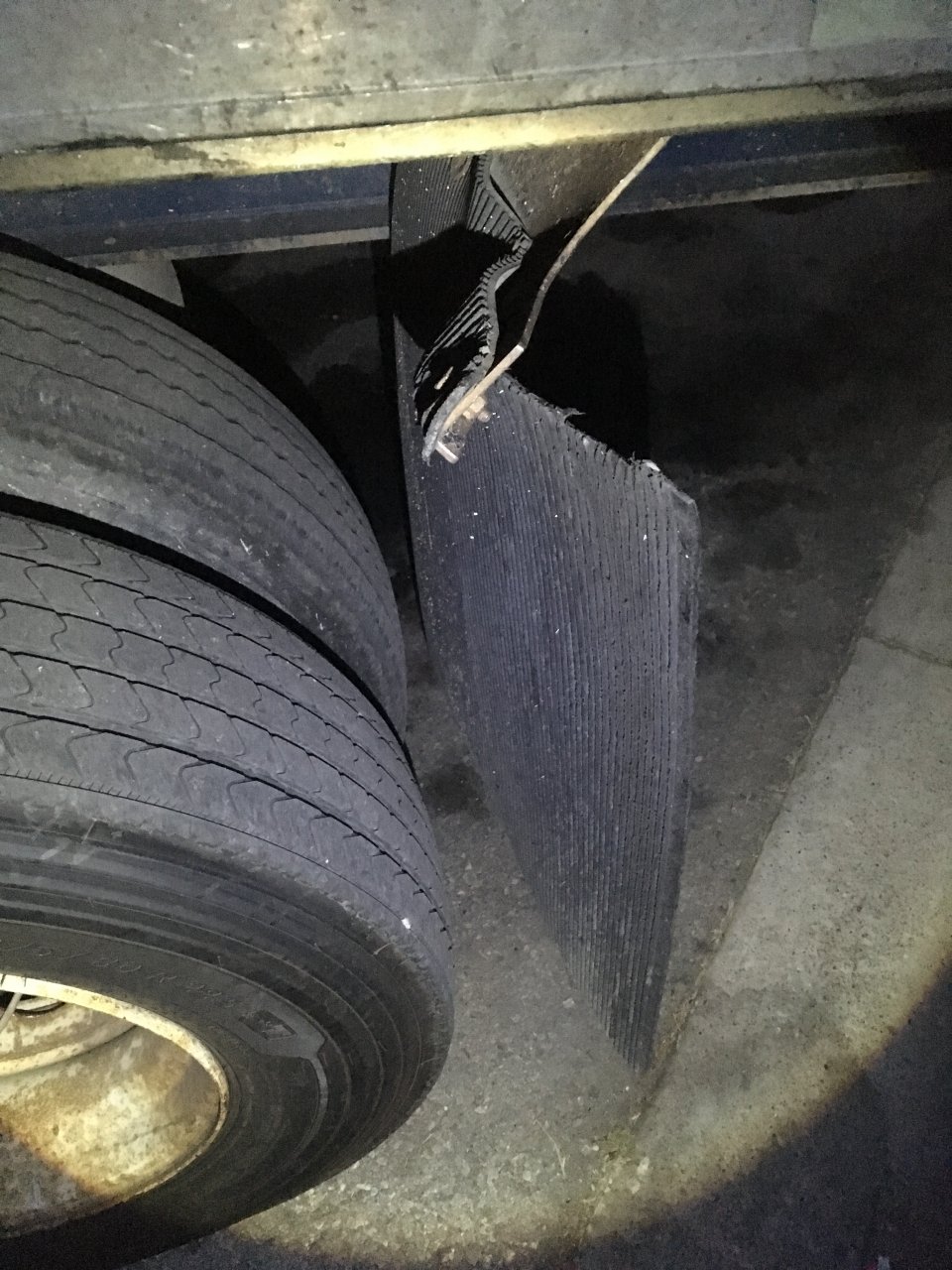 Take end bolt out, hook the chain binder into that bolt hole, run the chain back towards the upright I beam on the dot bumper. Tighten the ratchet up and pull it straight. Flip the mudflap over, poke four holes with your knife or screwdriver, bolt it back up or zip tie. Like Swamp Man says “Here we go!!!l”