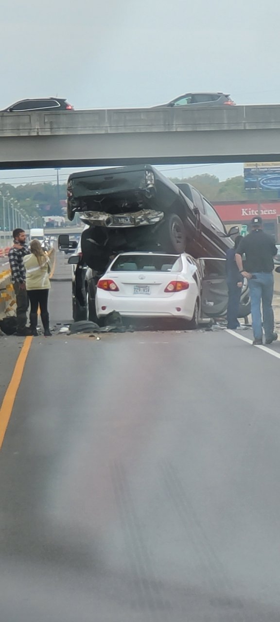 The car hit the back of the black pickup and ran up under it. The car was definitely moving faster than they should have beencke, Eldiablo, singlescrewshaker and 3 others Thank this.