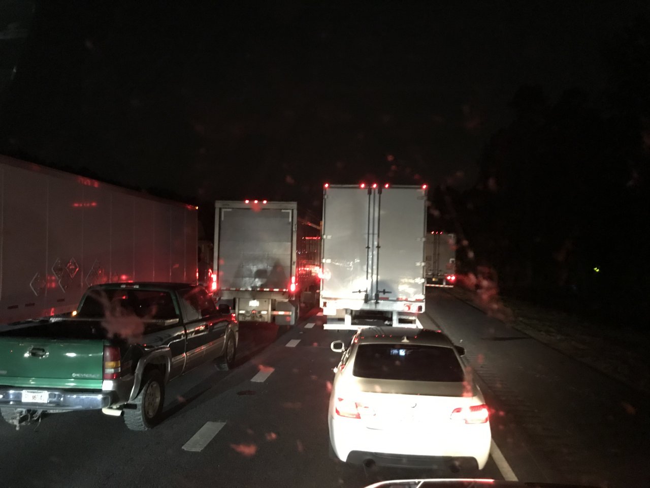 Setting at the fuel island, nearly 1/2 is full of downed trucks for the night. the trucks in front of me are 3 deep......