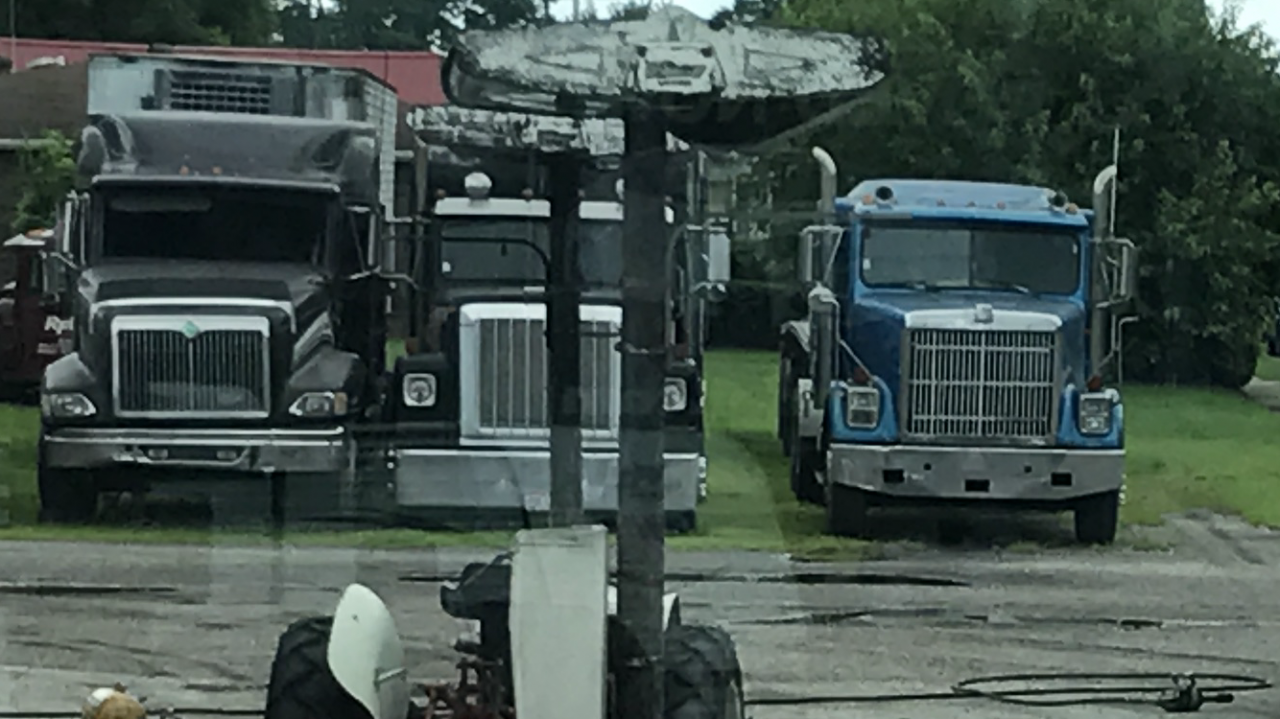 I see what looks like an 8N tractor, a tire gun, the remains of the gas pumps, and some IH trucks, but somehow I think I am missing it.