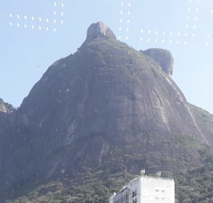 Actually, what you saw in that picture is one side of Pedra da Gavea hill. The picture shows the side the yellow arrow is pointing to. That side is called Cabeça do Imperador (Imperator's Head). The other side of Pedra da Gavea looks like a face and it's a very touristic spot with ecological trails...