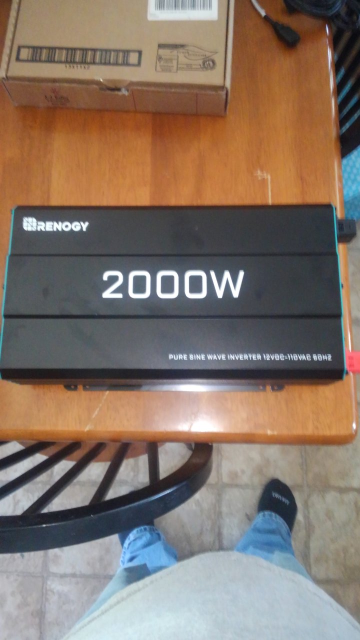Got a 30A 100W Flexible Solar Panel with charge controller, this inverter, and a 100aH Deep Cycle Gel Battery.