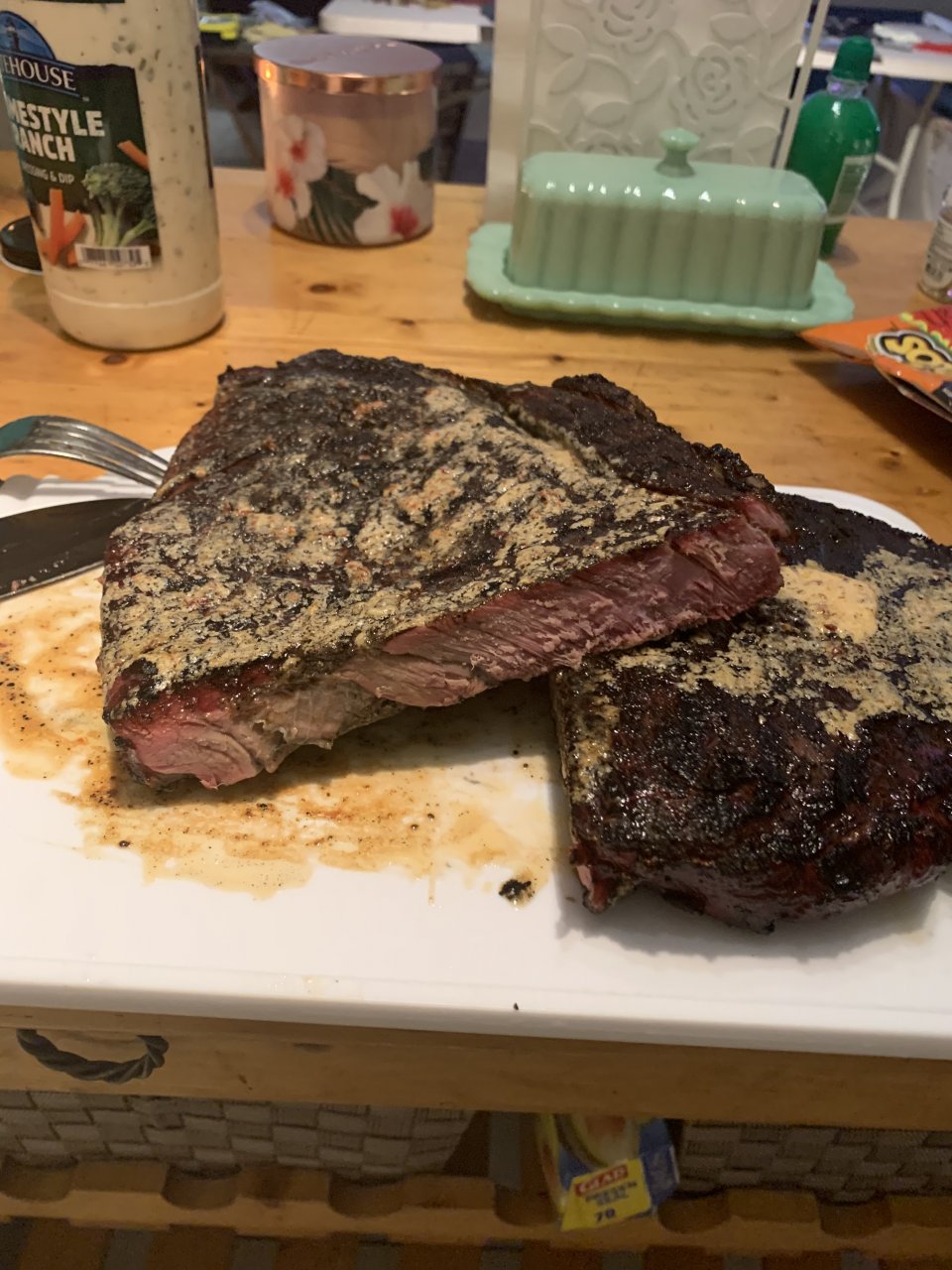 The yellow stuff is steak butter with blue cheese crumbles 44066AA3-7BA3-46CB-99E6-7463F22CE784.jpeg Sunday supper.