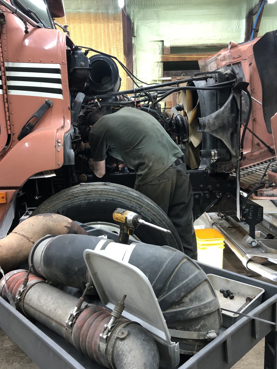 Got up here to work on it a week ago. Coolant leak was slightly more involved than I had hoped. Ordered parts last monday, & half of them turned out wrong, so reordered. Then had to go to New Jersey for family emergency Wednesday to Saturday.