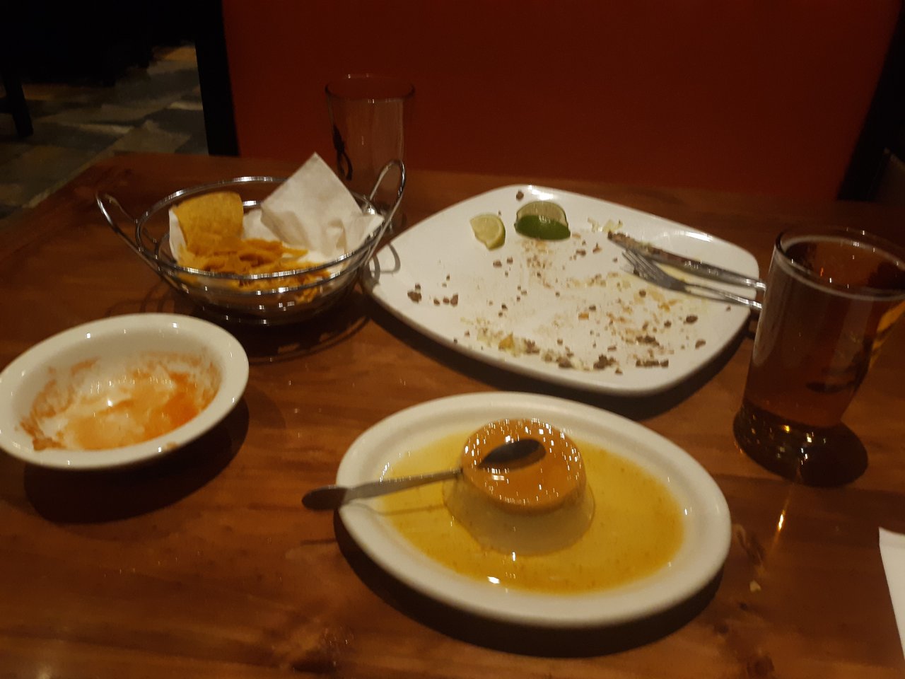 It was a beef Chimichanga, cheese quesadilla, & a beef salad bowl thingamajig..? Washed it down with a baby sized flan.. lol Very decent, reasonably priced grub over here. Might just stroll on over again tomorrow..