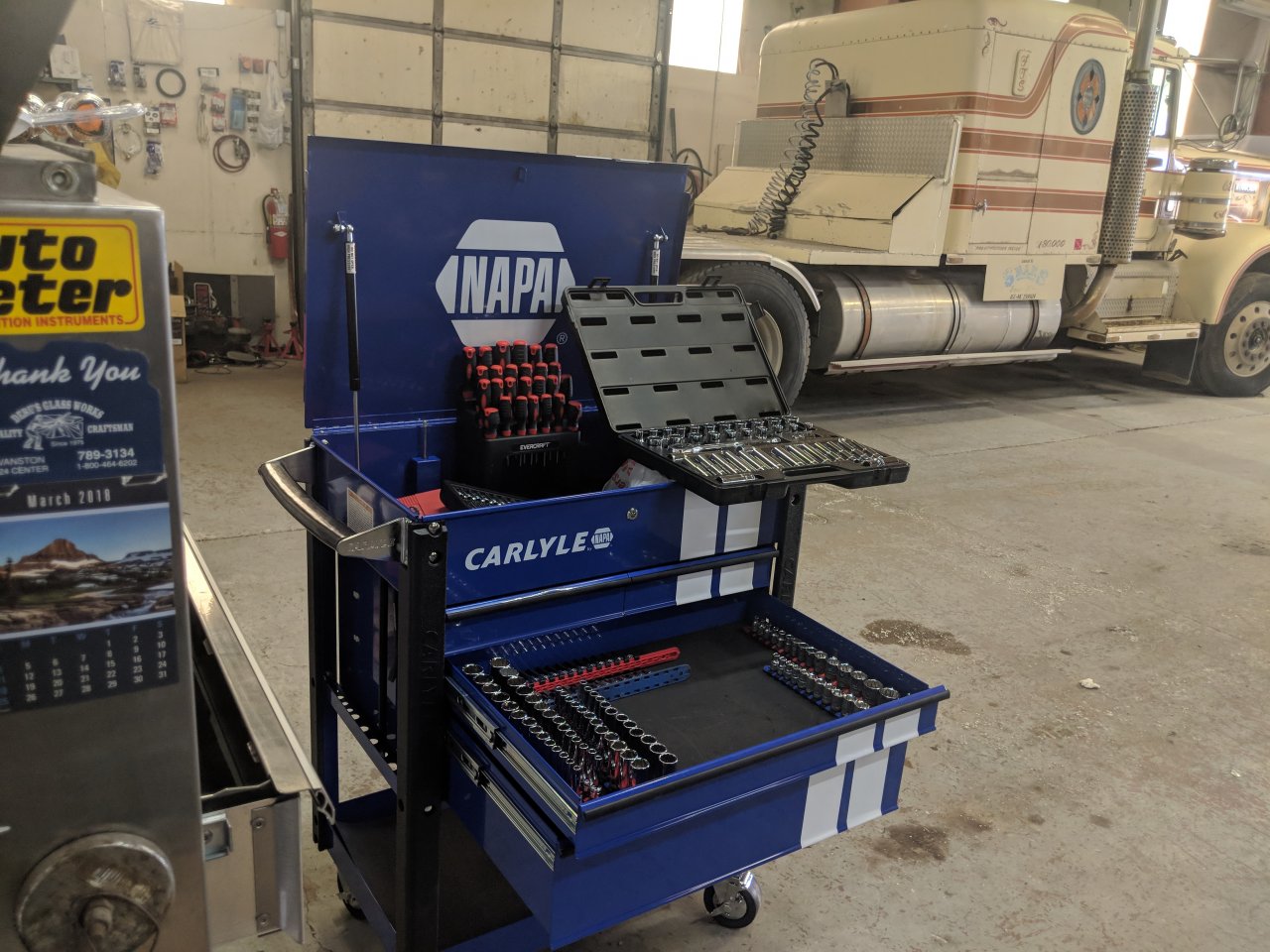 Napa had a tool sale awhile back and my order came in today. I'm thinking that deciding where things go in a new box is like when a young married couple is choosing which side of the bed to have.