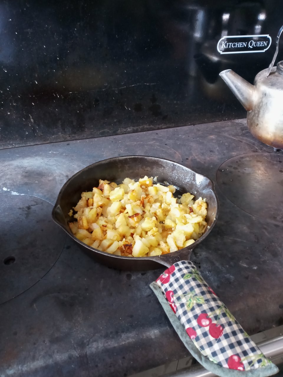 What to do on a day like today, sit by the cookstove, listen to the wind howl, watch the snow pile up, wait for Spring, and cook some eggs, toast and home fries, life is good...