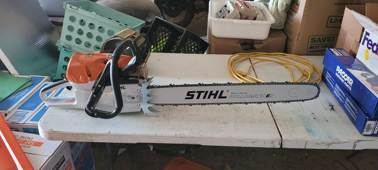 I just went to town and spent a bunch of money today. New saw came in. It's really nose heavy because light bars are on indefinite back order. Tried to locate a tsumara light bar for it.... no luck there.....nobody has stock. Frigging sucks. Guy says he will prolly not see another (r)cm saw for years. You wanna guess where stihl sources its electronics? Times up. Frigging Ukraine of all places! So, dealers are trying to get carb Saws and not getting them either. So, pretty much stock on hand from here on out apparently.