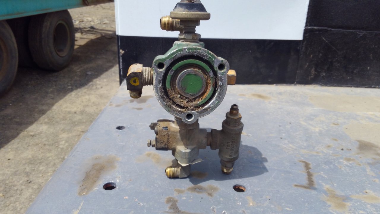 The yellow one is under the brake pedal inside (ears with holes is where the pedal mounts on a shaft), the crudded up plunger (it has a rubber boot over it put together) pushes down on the valve (under the cab) in the other picture and makes the stoppers go stop. I beat it back with a hammer & socket to where it is in the pic, that means no go stoppy by foot power.Feedman, PoleCrusher, Tug Toy and 6 others Thank this.