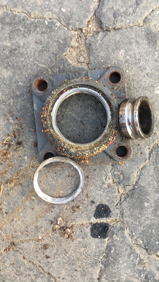 Last night I started to hear some squealing and grinding noises from the bottom end of the auger we use to fill grain bins. I got it apart this morning and I know why. All of the ball bearings were missing and luckily it didn't damage the shaft.