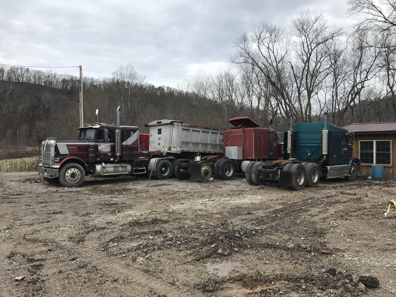 This one hooked to the dump bucket is just a few miles from me, has a 3406 / 15 against the dash / 44,000lb rears on daytons. Nice truck in it's day.