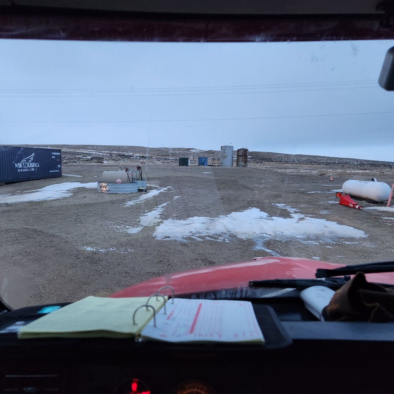 Driver calls 1pm- "I've got two more stops then I'll be up to you. What's it like up there? they gave me chains but they won't fit."
