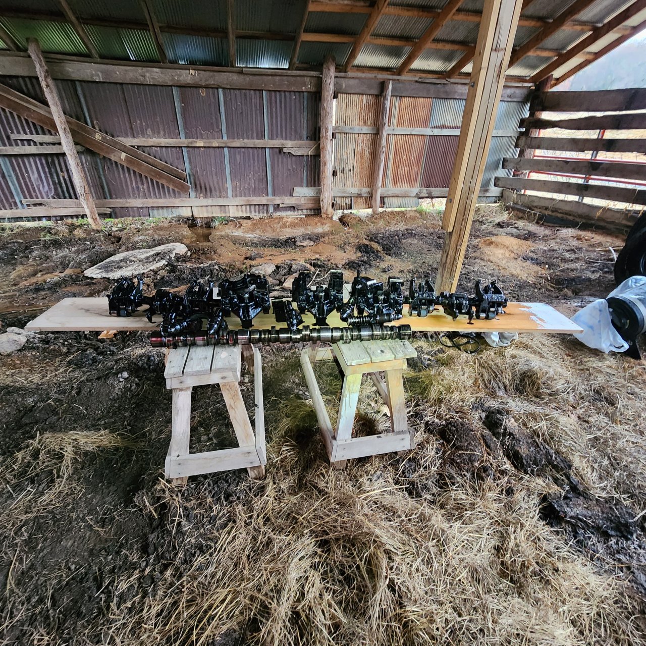 Well, I've made a mess. Yes, i know the barn isn't the best location for engine work.
