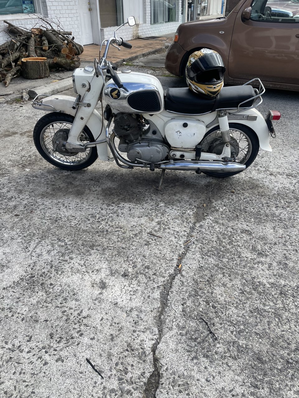 If I recall, my dad's first new bike was a 66,or 67 dream. Red bought in high-school driving dump trucks and pumping fuel. Then a 450. Later a 750