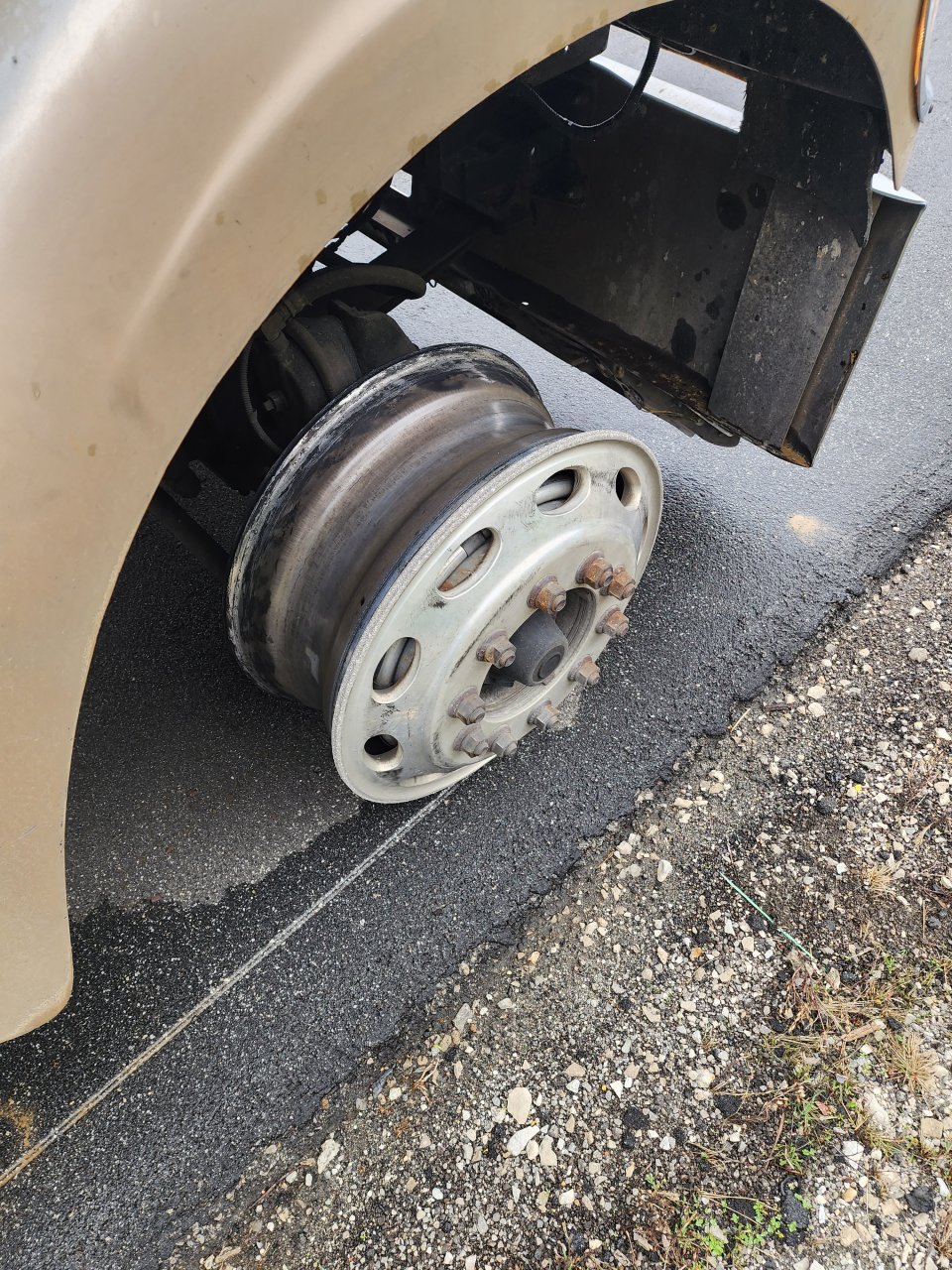 I know. Heard a little pop & it started pulling to the right. I let off the gas & eased onto the shoulder.