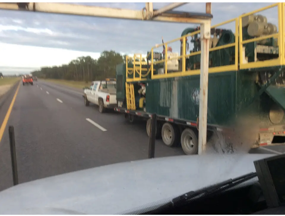 F250 dragging a 3 axle dual wheel tag a long with a piece of drilling equipment on it. He was all over the road at 55 mph. This is the pic that PattyJ made such a fuss over….