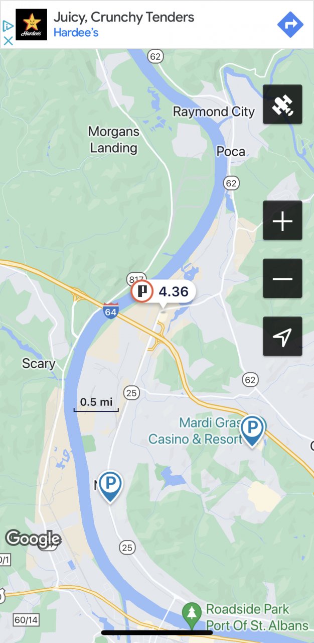 If you run 62 back towards Nitro it will take you to I-64 at exit 45, problem there is all the construction….