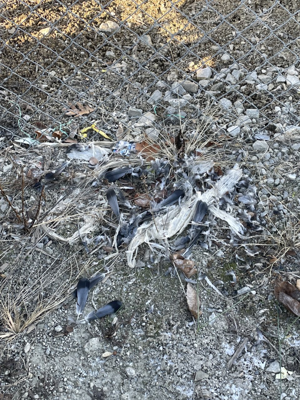 Hawk was having pigeon for breakfast…..