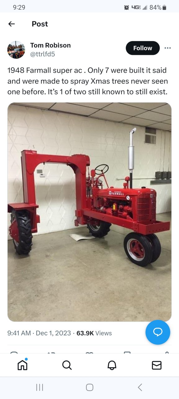 Guessing it's driven by only one wheel and the arch structure holds the spray chemical, but no idea? I find it funny that they put that much effort into a specialty tractor instead of developing a spray implement pulled by a "regular" tractor so it could be versatile.singlescrewshaker, OLDSKOOLERnWV, DeereRunner97 and 5 others Thank this.