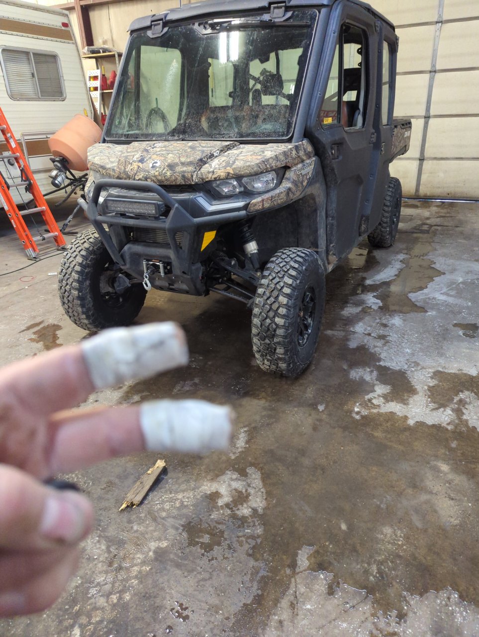 Safety tip: If you remove the remnant of the broken winch cable to install a new one simply setting your glove on the machine won't work. They have to be on your hands no matter how distracted or in a hurry you are.