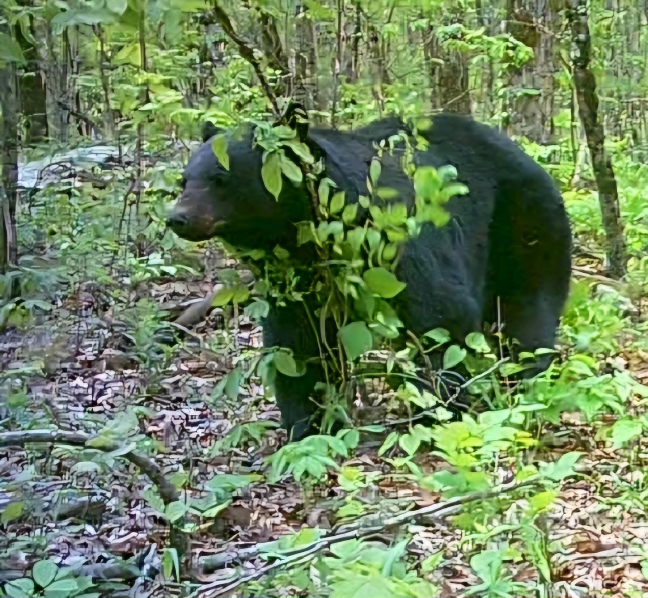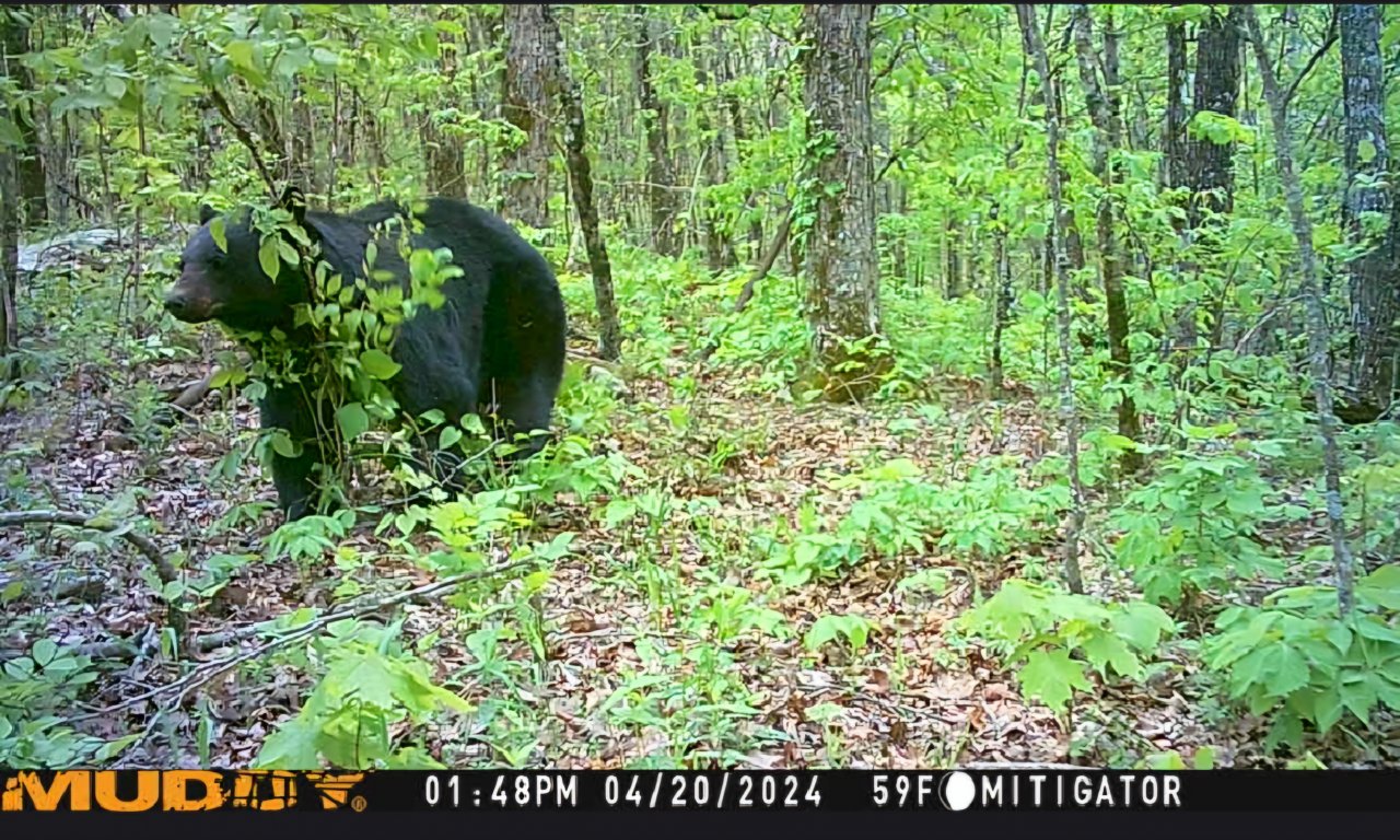 Got a chunk on camera yesterday. Pretty dahm good lookin Arkansas bear, especially this early in the year. Deer behind the same sapling for reference.