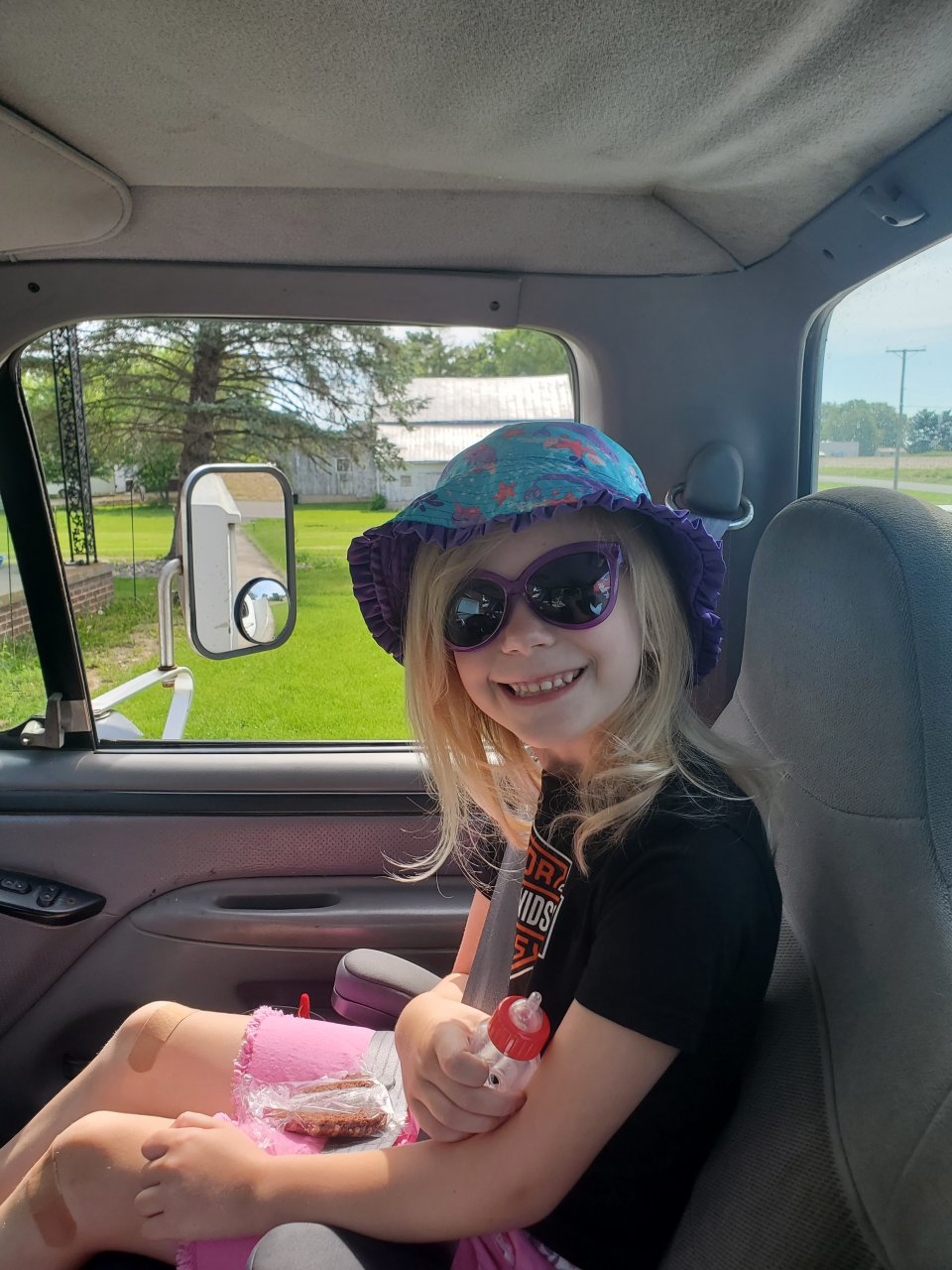 Had no plans today. First day of summer break. Got a Emergency service call. Kiddo said she would dress herself while I got the war wagon out. This is how it went.
