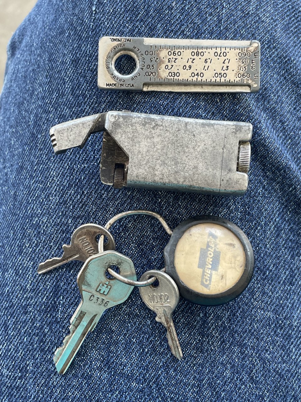 Look at that "Made in USA" spark plug gapping guage and adjuster.