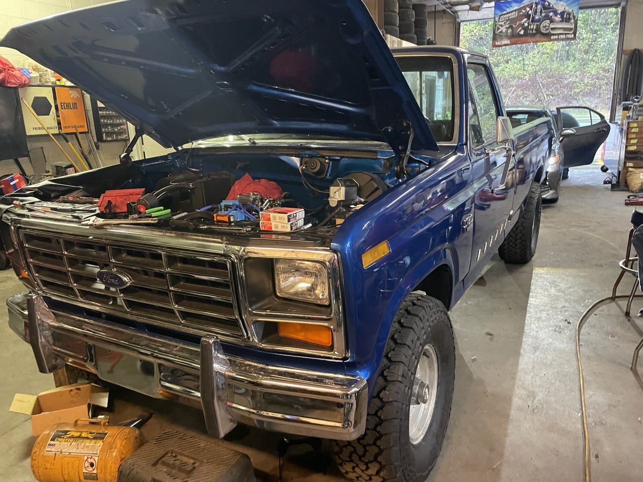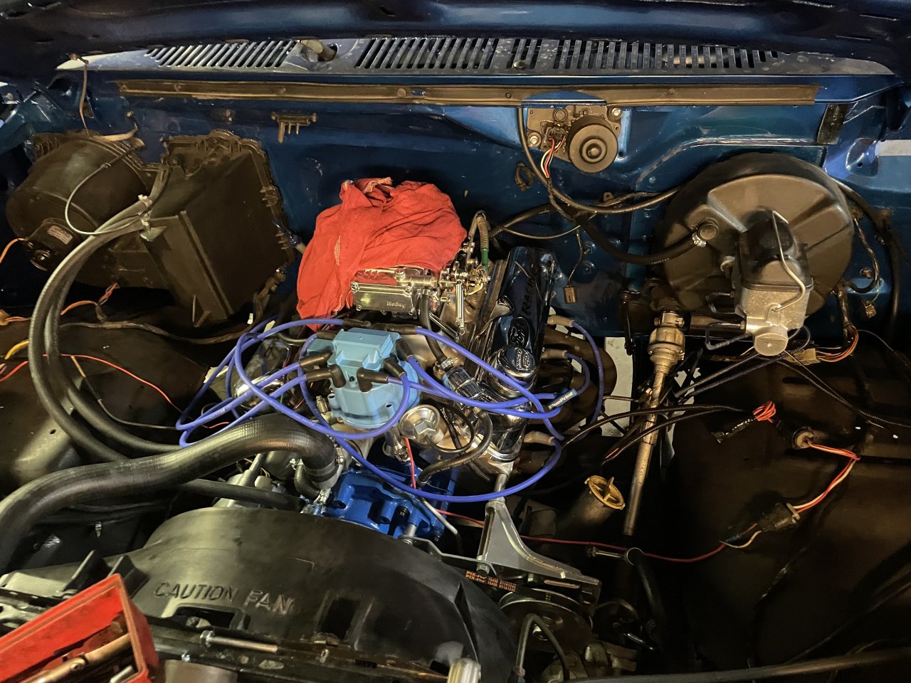 V8 / automatic. Just enough chrome under the hood to compliment the engine bay. They are redoing the interior, same folks who done the Jeep seats for me….