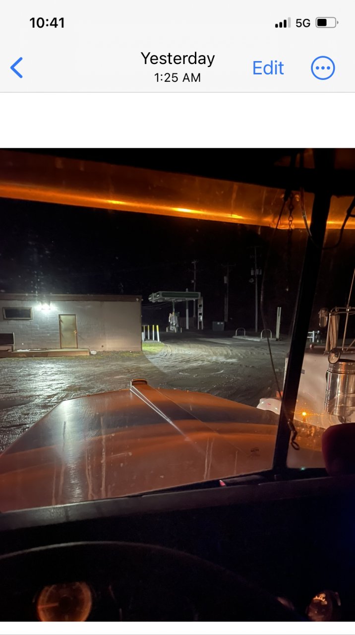 Yea I was like an alligator with my tail dragging the ground. I got up at 5:30 Sunday morning, up all day with much of the day communicating with Ty, Ron and others. When Ty mentioned his wife went in the store just to observe the closing time on the sign which was 10:00 pm, I got to thinking, hmmm, less traffic. So maybe never left your parking spot till little after 8:00 pm if memory serves me. Pulled in right before 10:30 and backed in nonchalantly beside the object of my mission. Think Ron’s Steerman got there close to around 3:00 AM, was so tired I wasn’t thinking right. And as you can see by the time on the pic, at 5:04 AM I was pulling on the big road and hauling a ss out of dodge. Then delivered a skid steer in Kentucky, went back later to load it back up and brought it to WV which was after I loaded the Volvo which I delivered today. Then had a birthday dinner for one of our son in laws last. By the time I finally went to bed at 8:45 last night , I had been up right at 40 hours straight non stop. Mrs. Oldskool said soon as I laid down I was out, unusual for me. The pic with the green traffic lights was leaving town rolling to Shady Spring / Ghent…..