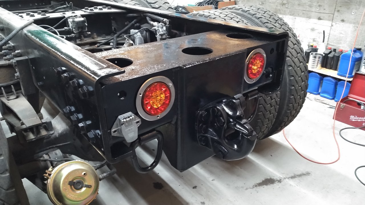 Making some progress. Rear crossmember in. I picked up factory Kenworth unit from my favorite truck wrecking yard. (16) 3/4 flange frame bolts it's not going anywhere. On to the wet kit, need to get the hose press set up in the workshop. I'm still organizing after clearing out the service truck.