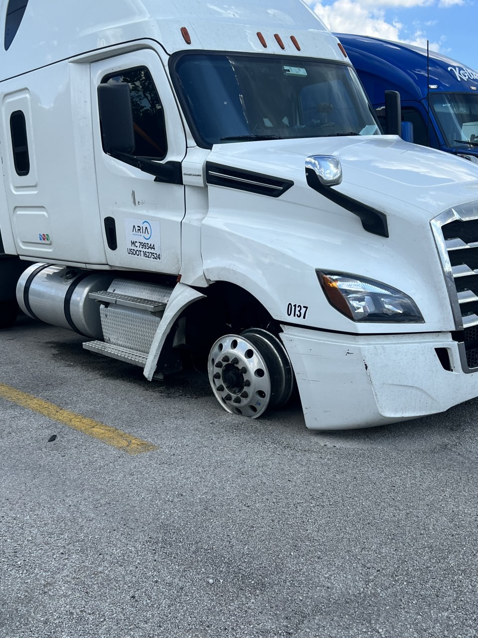 White Cascadia, easy peel stickers, probably a driver gettin his days wages