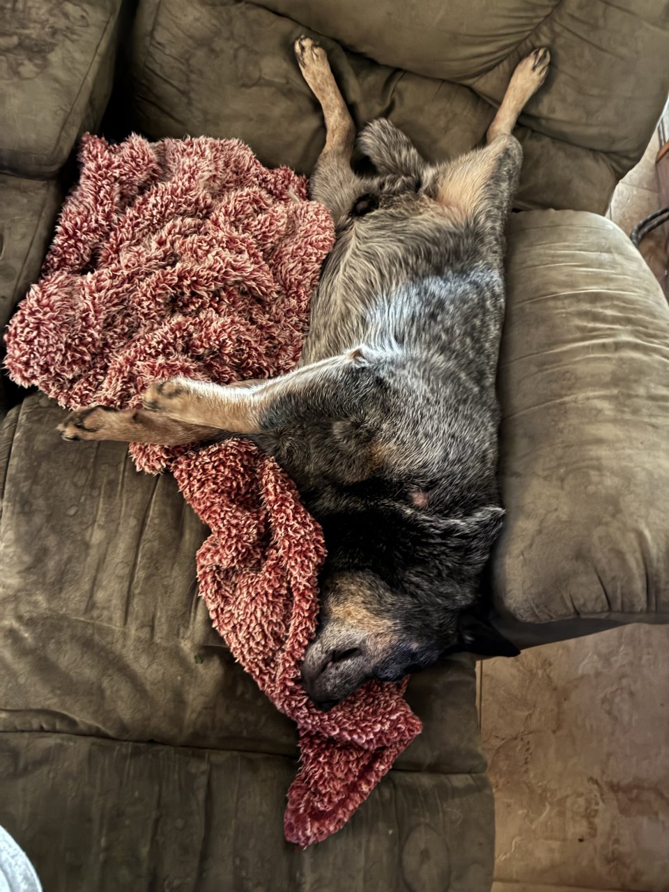 He was he’s made several steps. He still thinks he needs to be in front of the lawn mower in case a booger jumps out to get it