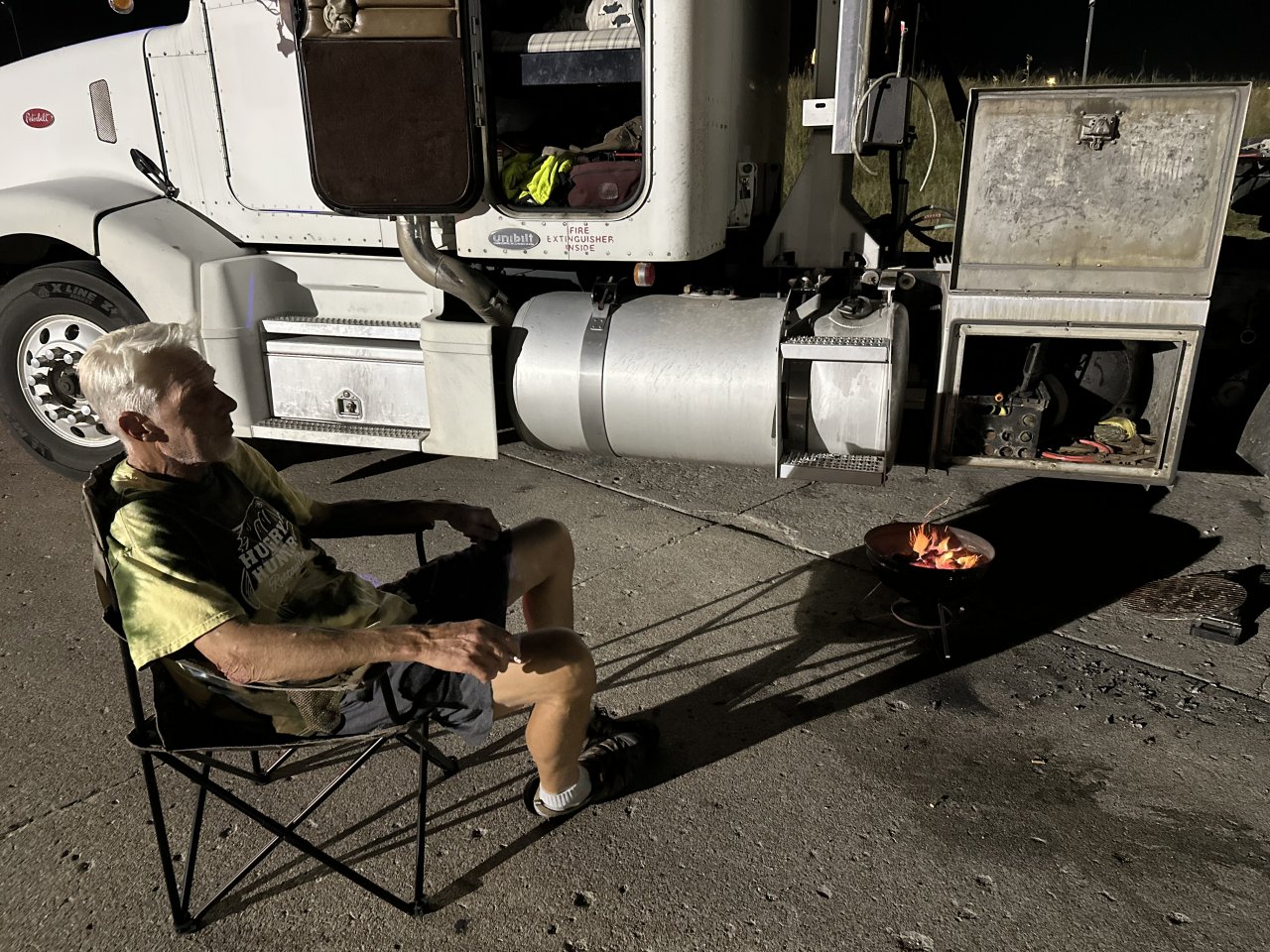 Truck stop parking lot trash talking KC Strip grilling couple of a- holes, in Cuba, MO.