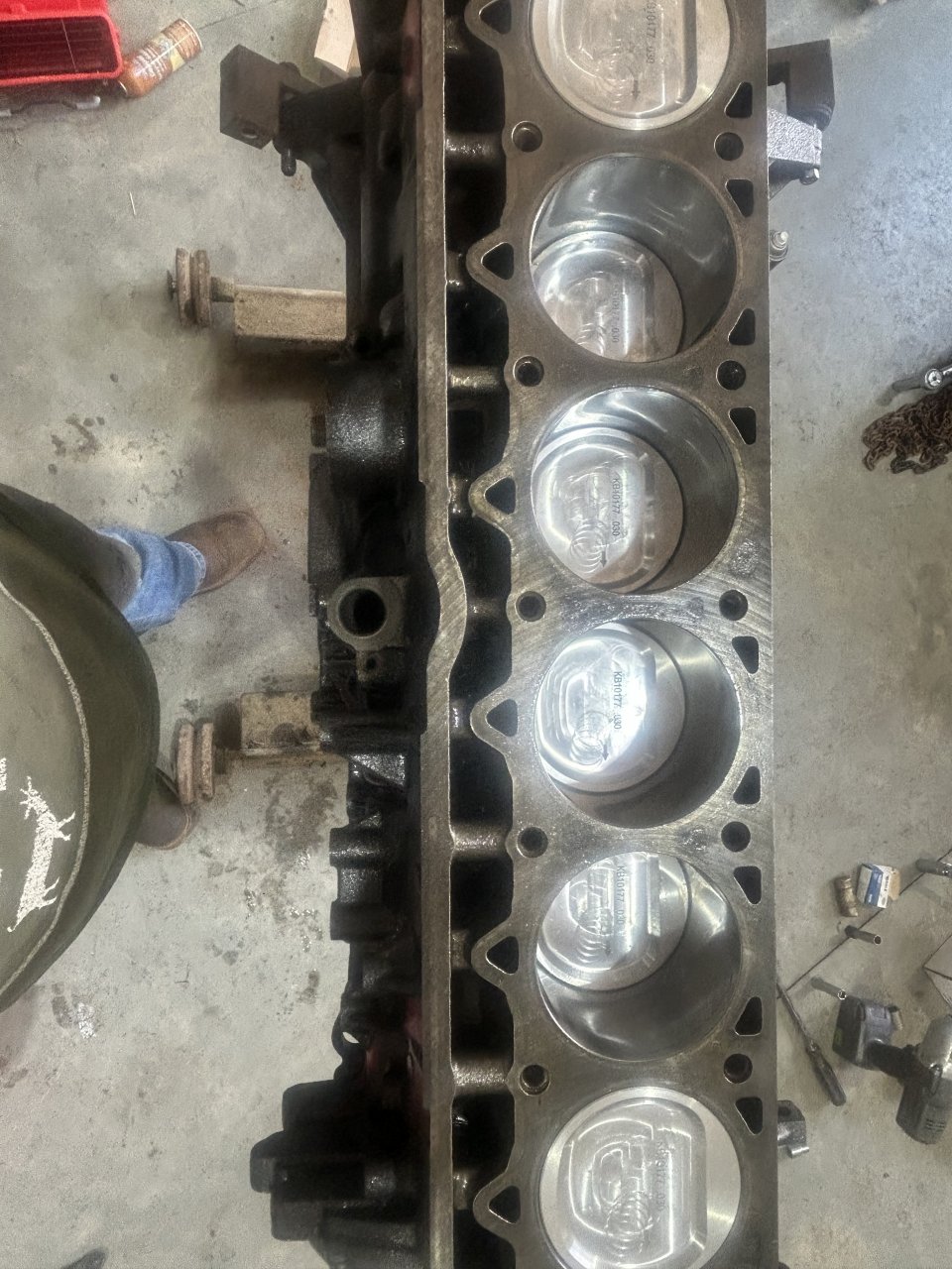 Pan is on. Gotta drop lifters in the holes then I can put the head on. Got some high powered ford fuel injectors coming. Should be here tomorrow. I went ahead and stroked it. So we should have about 282 cubic inches of raw power and muscle. Hopefully around 290 horse power