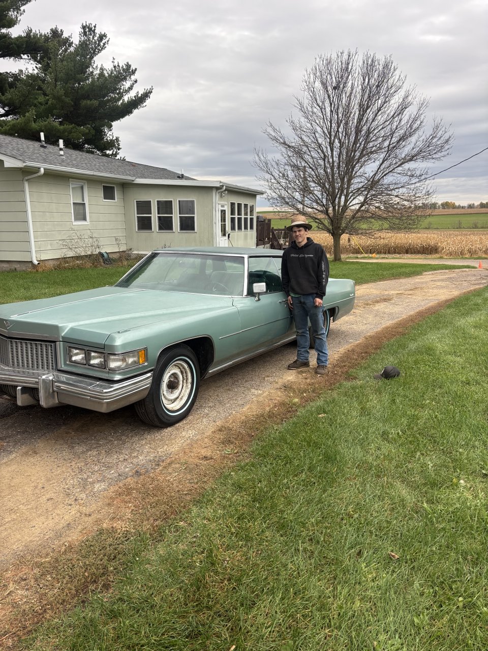 My nephew brought this barn find home. 1975 Cadillac. All original.